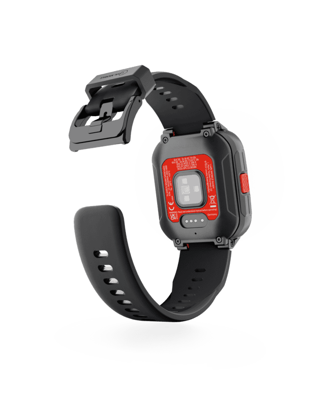 Tombol SOS untuk perlindungan pekerja tunggal (LWP), siap digunakan (membutuhkan aplikasi pihak ketiga, tergantung pada regulasi tiap negara)